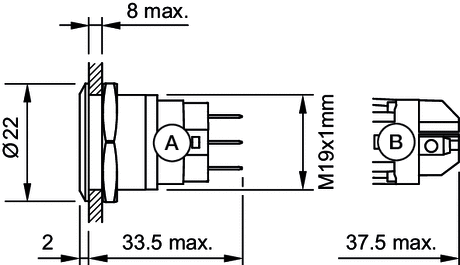 Frontafmeting : ∅ 22 mm